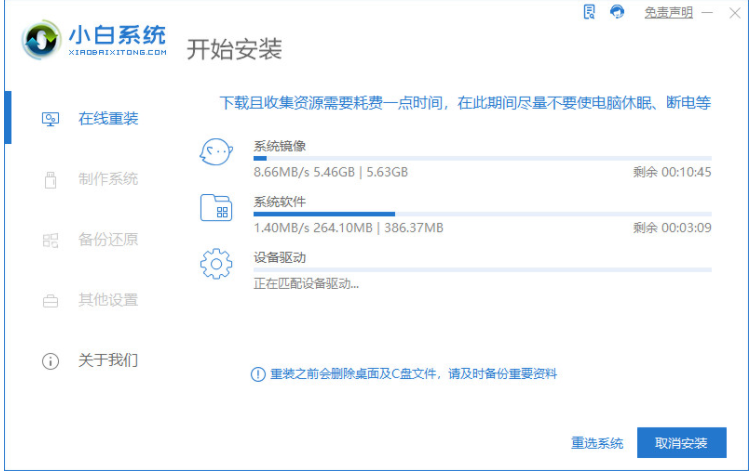 3、选择好软件后,小白软件自动下载win11原版镜像以及相关驱动,耐心等待完成后,小白软件将进入环境部署状态。
