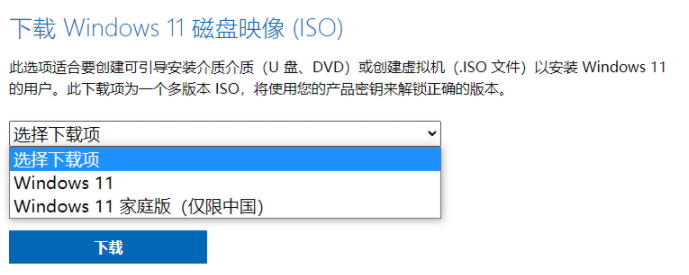 2、在该界面中往下滑,选择并下载windows11正式版iso镜像文件。
