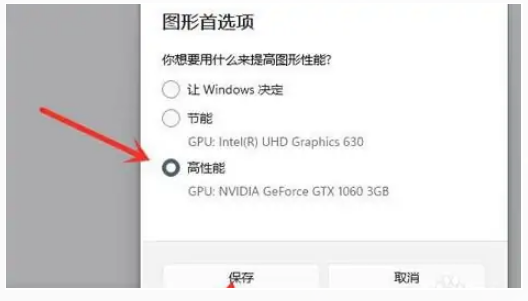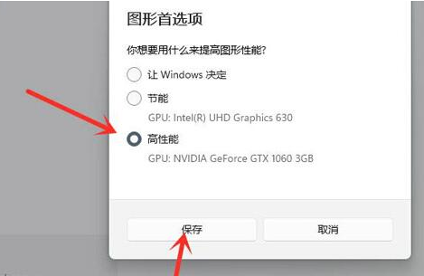 6、最后在图形首选项中选择“高性能”并保存即可。