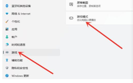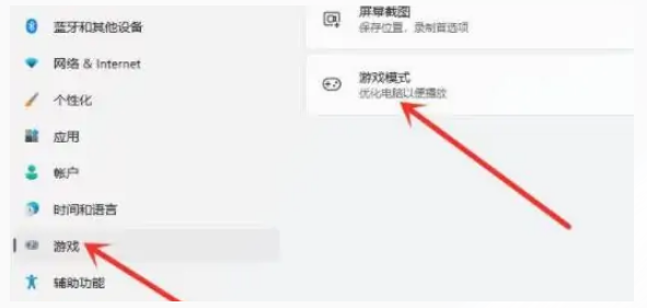 2、接着点击左边栏“游戏”,进入“游戏模式”。