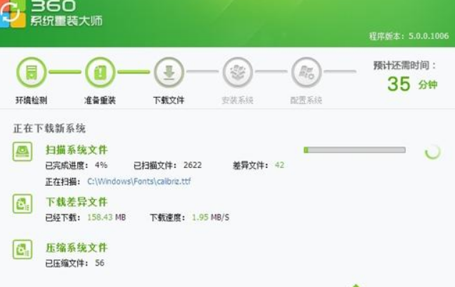 4、接着软件将自动检测当前系统win7与新系统的差异文件,会在云端下载差异文件。
