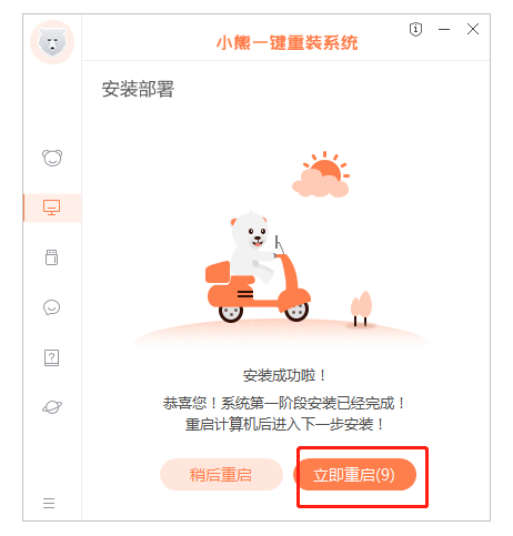3.随后小熊开始自动下载win7系统文件,安装完成后点击“立即重启”。