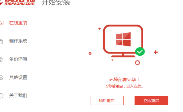 3.下载完成之后会进行环境部署,部署完成后点击立即重启电脑