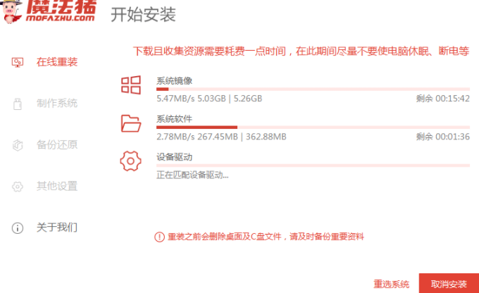 1、首先在电脑上下载一个魔法猪重装软件,打开软件选择在线重装,然后选择我们需要的win7系统。