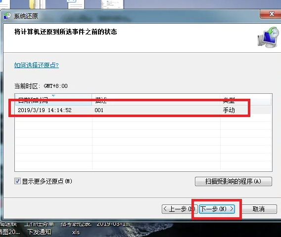 7、接下来,将打开系统还原列表,需要我们在其中选择一个恢复还原点,选择好该还原点之后,点击“下一步”按钮。