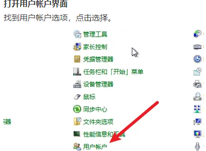 3、从用户帐户选项里面点击选择。