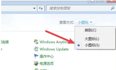 2、从右上角找到查看方式,将其设置为小图标。