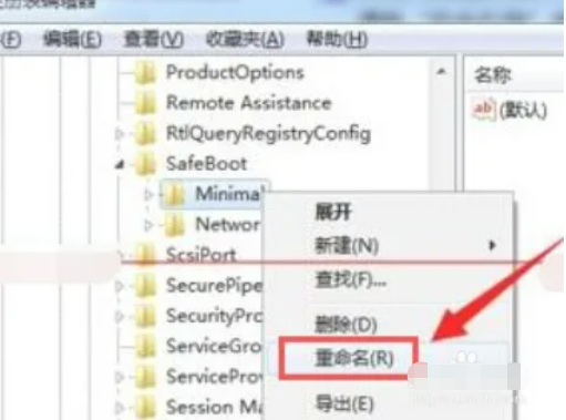 依次进入“HKEY_LOCAL_MACHINE\SYSTEM\CurrentControlSet\Control\SafeBoot”,在此可以看到“Minimal”及 “Network”项。