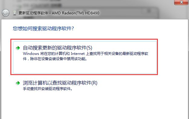 3、在弹出的窗口中,点击“自动搜索更新的驱动程序软件”,系统进入联机搜索软件界面,如果找到合适软件会提示安装。