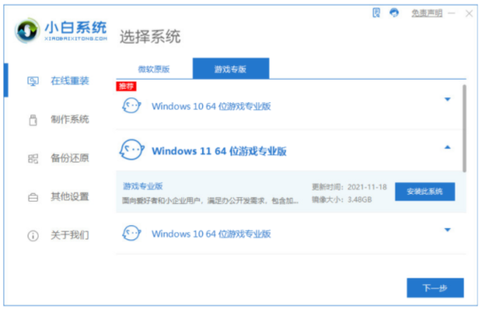 1、首先在电脑上安装好小白一键重装系统工具并打开,选择需要的win7系统,点击下一步。
