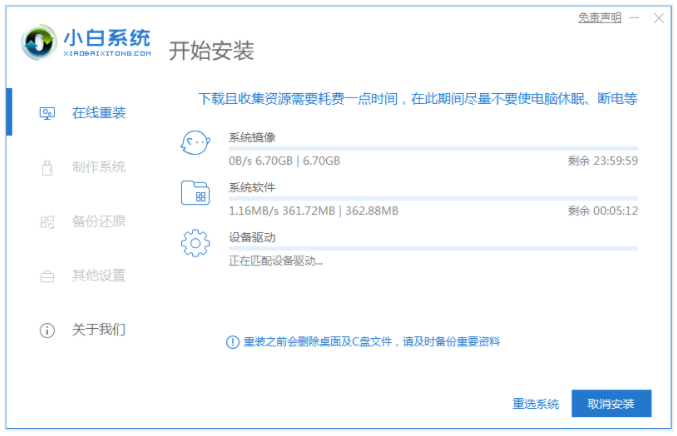 2、接着装机软件下载镜像文件等中,耐心等待就可,不需任何操作。