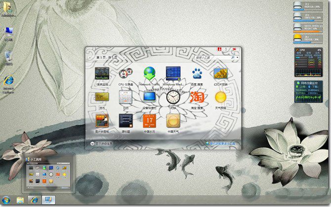 12、增加几十种实用小工具,如实时天气预报、设备快捷栏、常用搜索栏、CPU内存占用、日历、网络流量等;