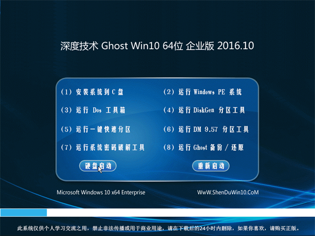 2、深度技术Win10x64位稳定企业版2016.10版本绝对保证原汁原味!最稳定版本,无蓝屏!