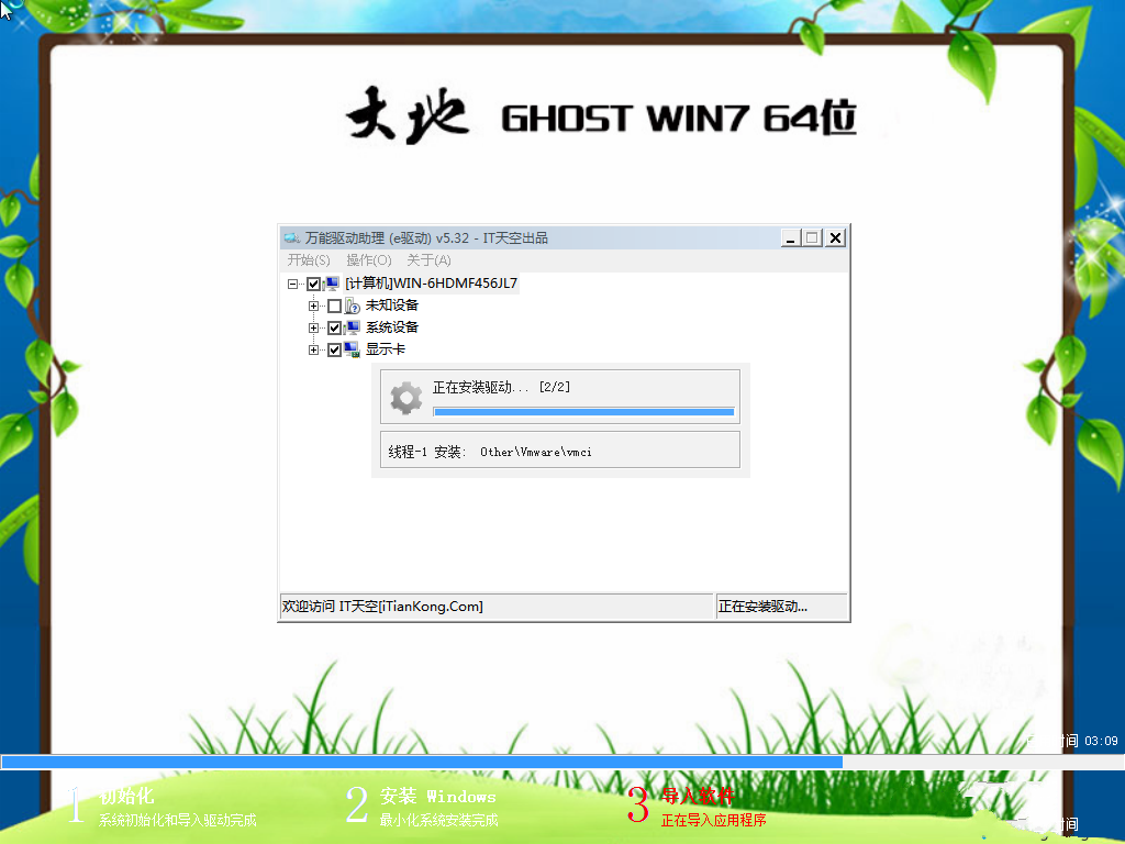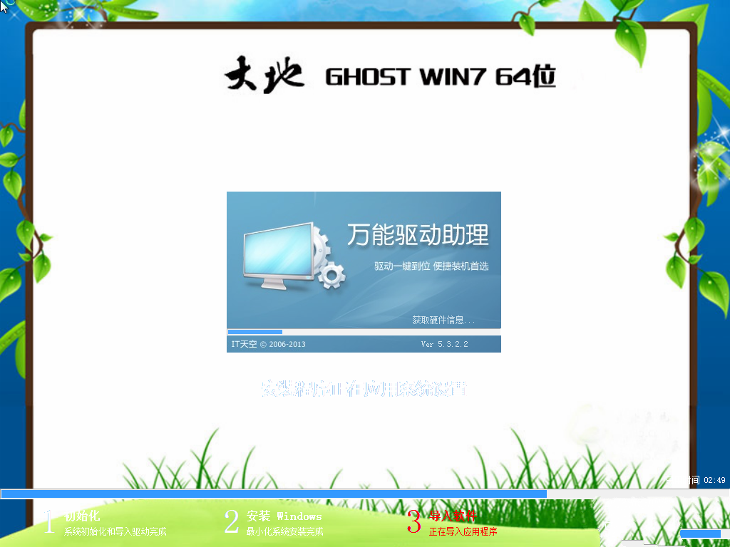 大地系统ghost win7 64位纯净专业版数几十项优化注册表终极优化,提高系统性能,严格测试。内置大容量驱动包,安装完成驱动就可以安装完成,无需用户手动安装。我的电脑右键加入了设备管理器、服务、控制面板、方便大家使用;禁用如关闭错误报告,关闭帮助等一些服务,提高系统性能。集成了电脑笔记本&台式机大量驱动,也可以适应其它电脑系统安装,集合微软JAVA虚拟机IE插件,增强浏览网页时对JAVA程序的支持。以系统稳定为第一制作要点,收集市场常用硬件驱动程序,添加安装华文行楷、华文新魏、方正姚体、汉真广标等常用字体,首次进入系统即全部硬件已安装完毕。