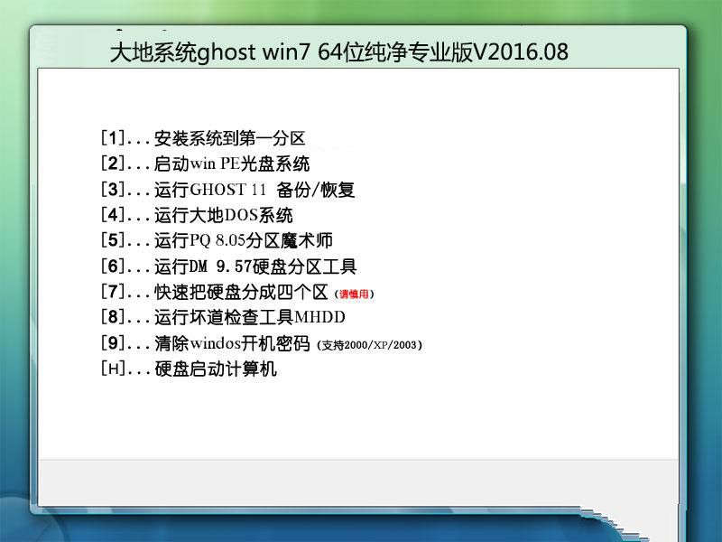 至此,关于这款强大的大地windows7专业版64位安装包系统下载到这里就全部结束了,数几十项优化注册表终极优化,提高系统性能,系统支持光盘启动一键全自动安装及PE下一键全自动安装,自动识别隐藏分区,方便快捷。