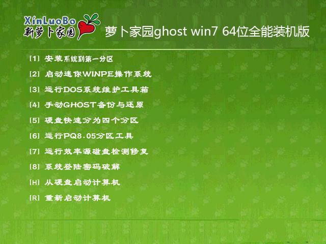 新萝卜家园ghost win7 64位全能装机版安装维护方便快速 - 集成常见硬件驱动,智能识别+预解压技术,绝大多数硬件可以快速自动安装相应的驱动,系统安装全过程约6分钟,部分机子可达5分钟,高效的装机过程。系统通过微软正版认证系统在线认证,支持在线升级更新,集成了自2016年流行的各种硬件驱动,首次进入系统即全部硬件已安装完毕。在不影响大多数软件和硬件运行的前提下,已经尽可能关闭非必要服务,自动安装 AMD/Intel 双核 CPU 驱动和优化程序,发挥新平台的最大性能。系统支持光盘启动一键全自动安装及PE下一键全自动安装,自动识别隐藏分区,方便快捷,欢迎大家安装体验!