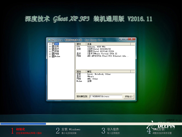 * 集成常见硬件驱动,智能识别+预解压技术,绝大多数硬件可以快速自动安装相应的驱动。