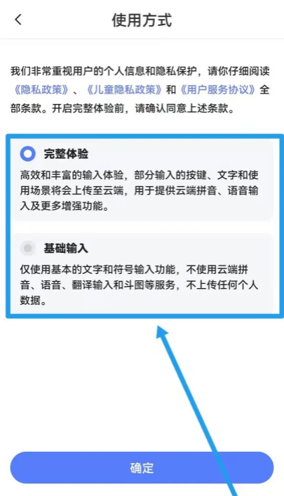 4、选择【完整体验】或【基础输入】方法即可完成设置。
