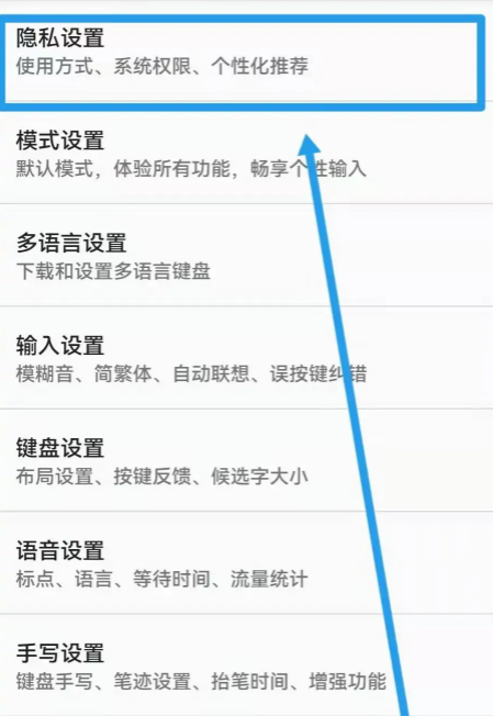 2、找到并点击【隐私设置】。