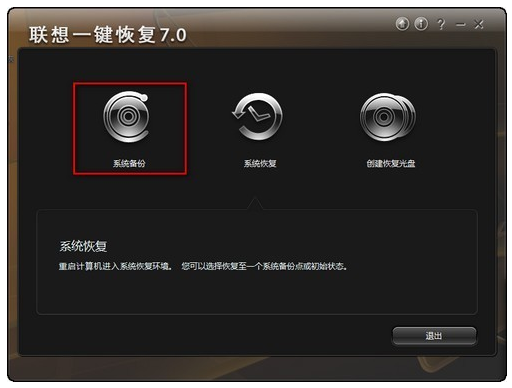 2、进入联想一键恢复7.0版主界面,选择点击系统备份。
