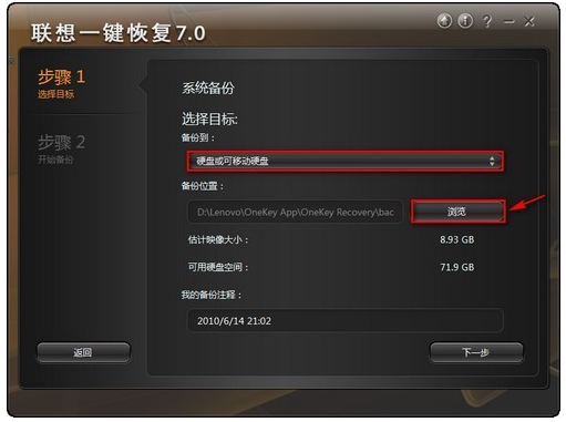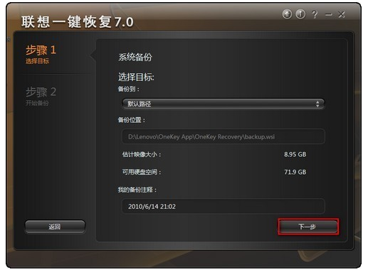 联想一键恢复系统的备份方法: