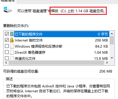 2.我们可以看到可以清理的空间,然后点击确定就可以了。