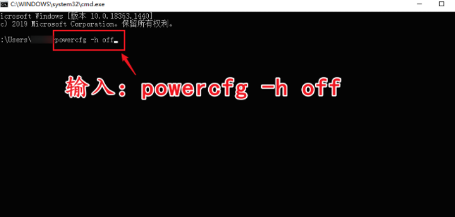 2.在跳出的大黑板上输入powercfg -h off,然后点击回车即可。