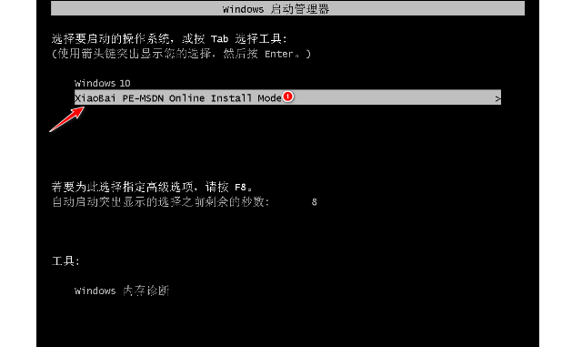 总结:进入重启界面,选择pe系统进入,跟随指示安装既可。