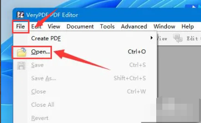 2.找到左上方File菜单中的Open选项,导入我们需要处理的PDF文件。