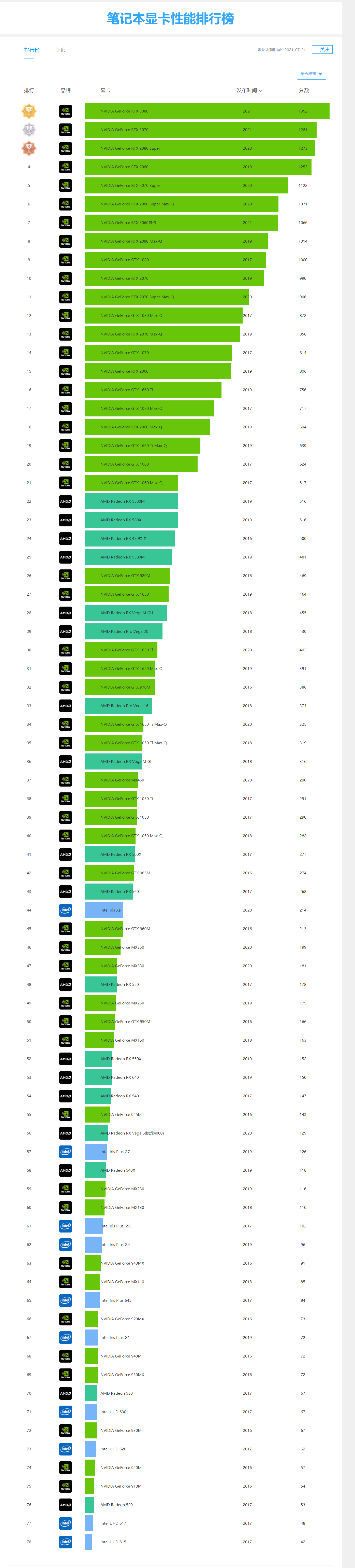 以上就是小编为大家带来的2021笔记本显卡排行,有需要的小伙伴一起来看看吧。