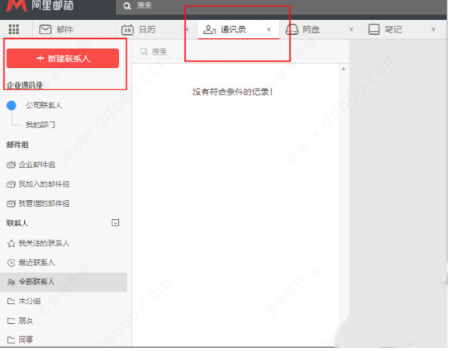 1、下载好阿里邮箱企业版电脑版后,登录邮箱,打开通讯录,然后在左侧的窗口处点击“新建联系人”;