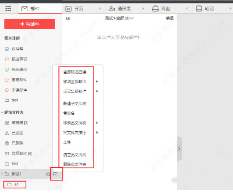 在“邮件”功能下找到邮件文件夹,单击右侧的+号,在邮件文件夹目录中添加新的文件夹。