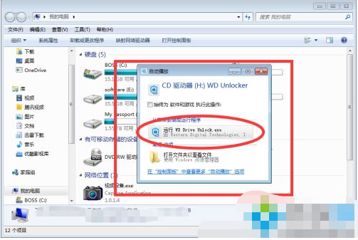 2、等待电脑读取移动硬盘之后,鼠标点击红色框中的:运行exe。