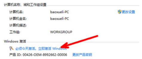 2、进入电脑属性界面,找到激活信息,点击激活链接。