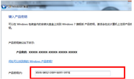 3、接下来在产品密钥处输入系统密钥,输入完成,点击下一步。