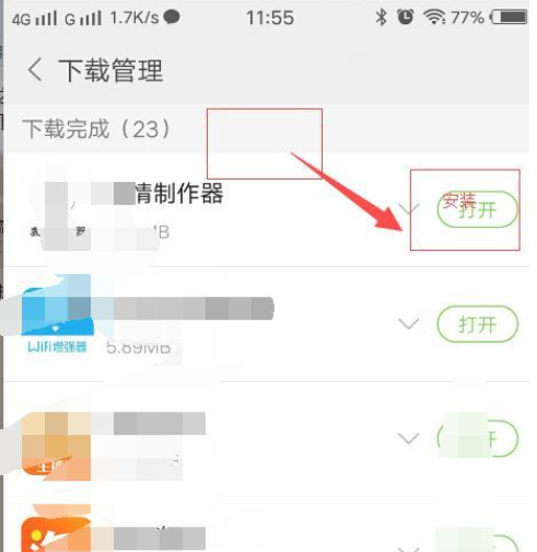 04、在下载管理页面软件右侧会有一个安装选项,点击安装就可以安装软件到手机了。