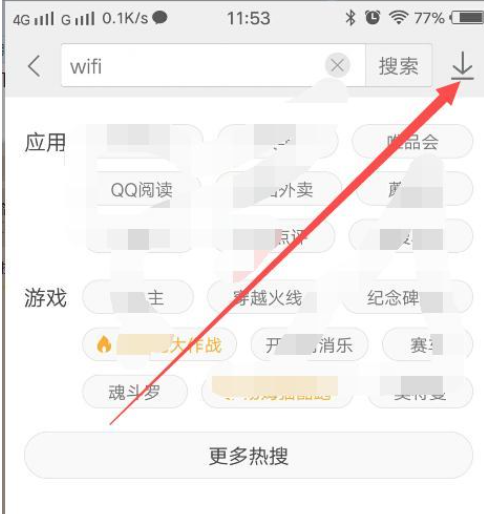 02、打开之后在查找栏输入:wifi万能钥匙,在下面就会自动出现软件选项。点击右侧的下载。软件就会自动下载安装。