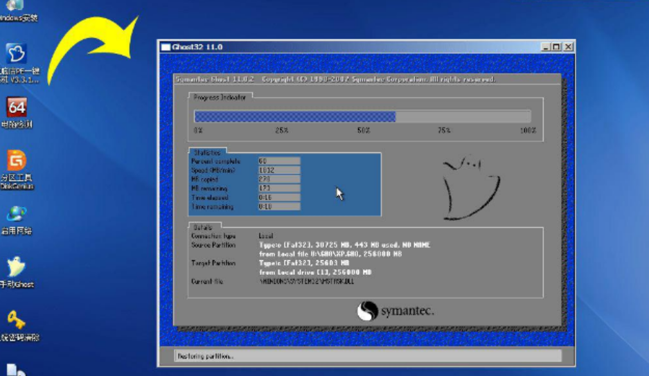 3、进入到执行系统安装到系统盘的过程。