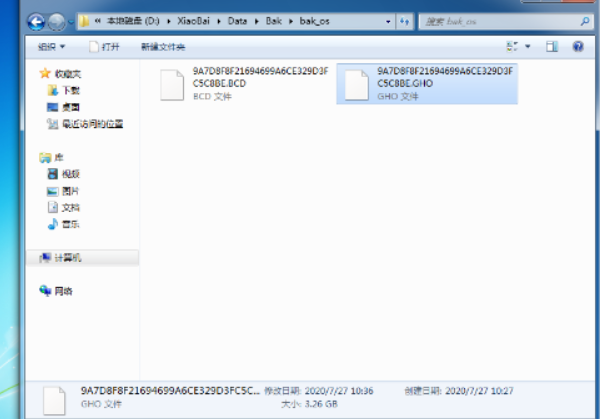 8、完成后此时将会自动重启电脑,重启进入到系统,在电脑中的硬盘XiaoBai\Data\Bak\bak_os 文件夹中找到自己备份的系统镜像就可以啦。