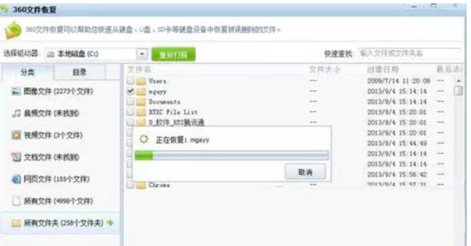 2.扫描结束后,360文件恢复功能将显示丢失的文件。 有四种类型的可恢复性:高,较高,差和较差。 当然,高和高文件的可恢复性更好,另一个是文件夹的可恢复性为空。 在这种情况下,绝对可以恢复该文件夹,但是该文件夹内的文件可能已被擦除。 写入,还原文件夹后,您可能无法找到所需的文件。