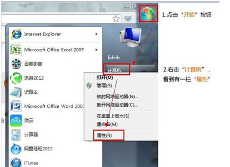 2、区分32位还是64位系统的方法就是直接查看,首先点击开始,再右键点击计算机,找到属性。