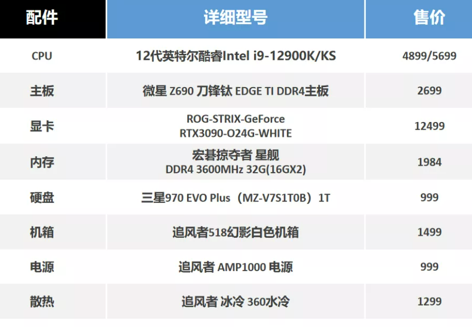 3、25000元#i9-12900K/12900KS配置清单