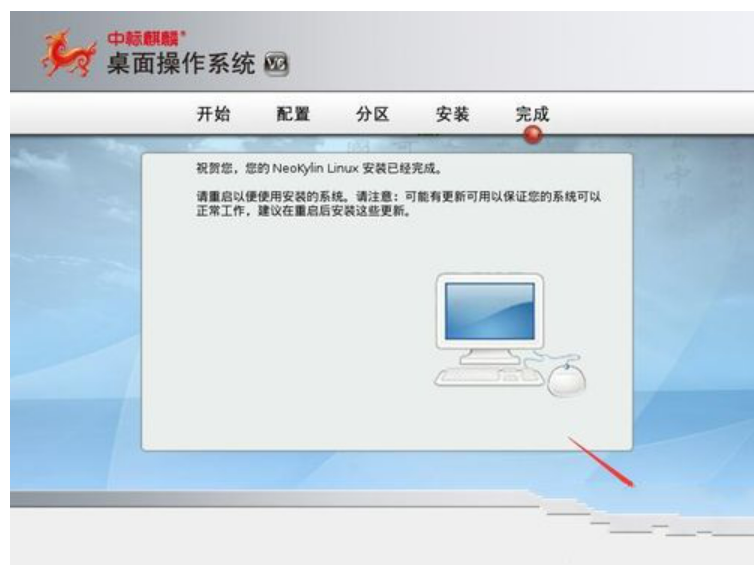 9.此时将正式进入中标麒麟操作系统的安装过程,待整个安装程序操作完成之后,提示“重启计算机”,选择“立即重启”按钮以重启电脑。