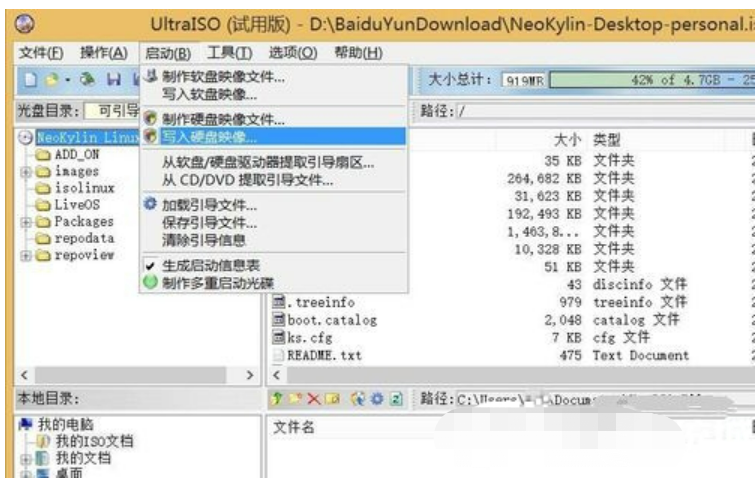 3.插入U盘(建议格式化一张容量大于4G的空白U盘),点“启动”-“写入硬盘镜像”项以创建启动U盘。