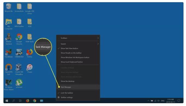 4、重新启动电脑后,鼠标右键点击任务栏,选择任务管理器。