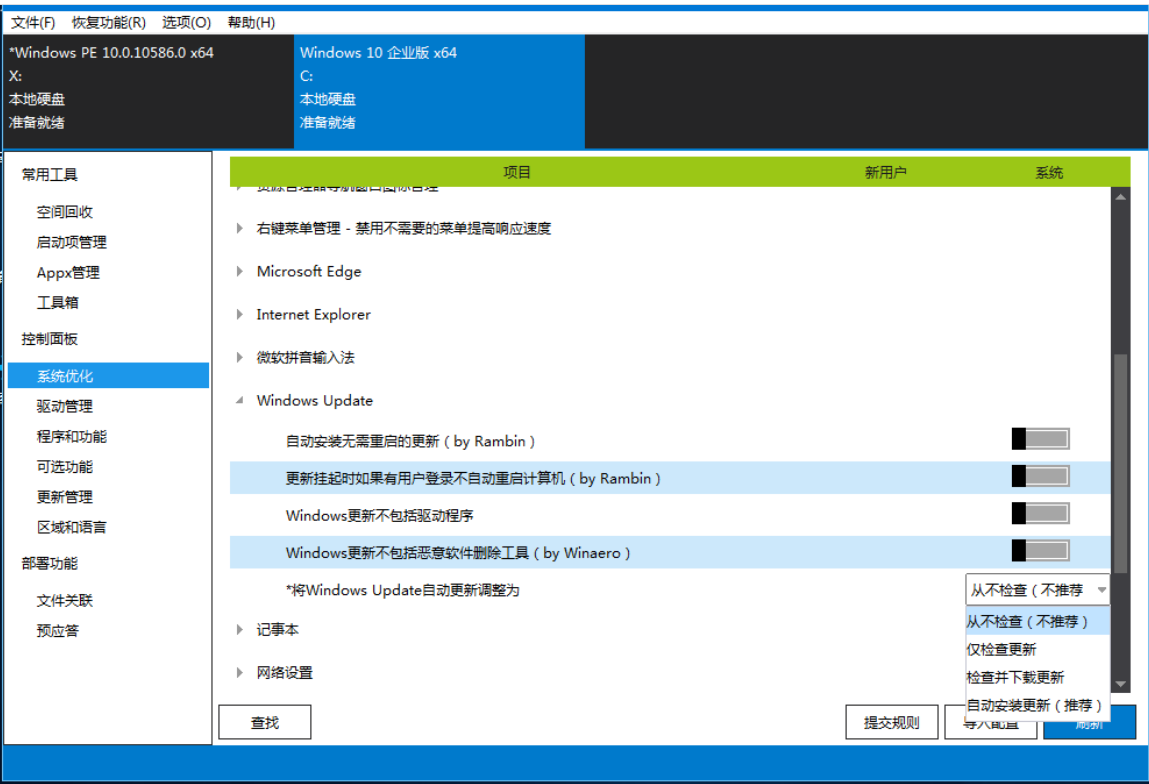 Win系统的安装方法有很多,可以使用原始系统的USB存储器来进行系统的安装。 此外,还可以使用PE中的工具进行安装。 常用的工具有Winntsetup、DISM、CGI等。 上面的照片是Winntsetup的安装系统,其优点是可以安装一个硬盘、一个硬盘和多个硬盘。 可以显示安装前的驱动器状态是否可以正常启动,可以固定系统磁盘的驱动器盘符(默认c ),可以选择系统版本)家庭、专家、企业等。