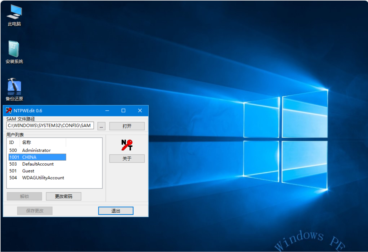 如果为系统设置了密码,但忘记了密码,则不需要重新安装系统,可以使用NTPWEdit更改XP、Win7、Win8和Win10系统的本地引导密码。 DISM上的帐户管理可以清除windows7、windows8和windows10系统的本地密码,但不支持XP系统。