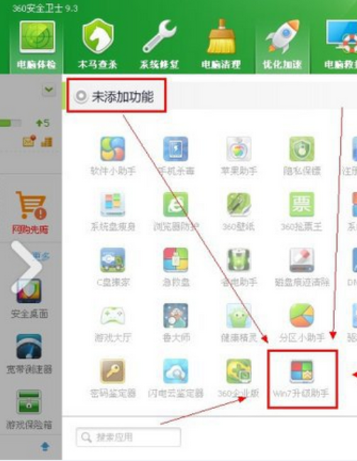 2、点击【未添加作用】,就可以看到360升级助手啦。
