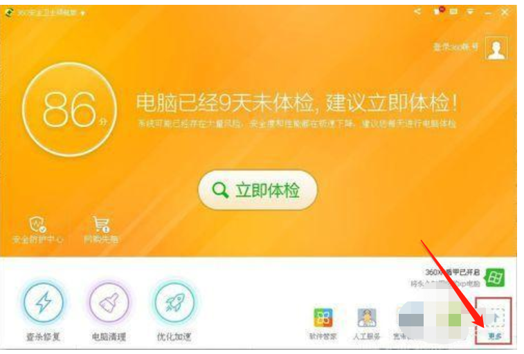 1、打开360安全卫士,点击右下角的“更多”,如图所示: