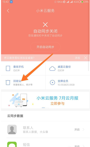 方法一:进入小米云服务的回收站内查找删除